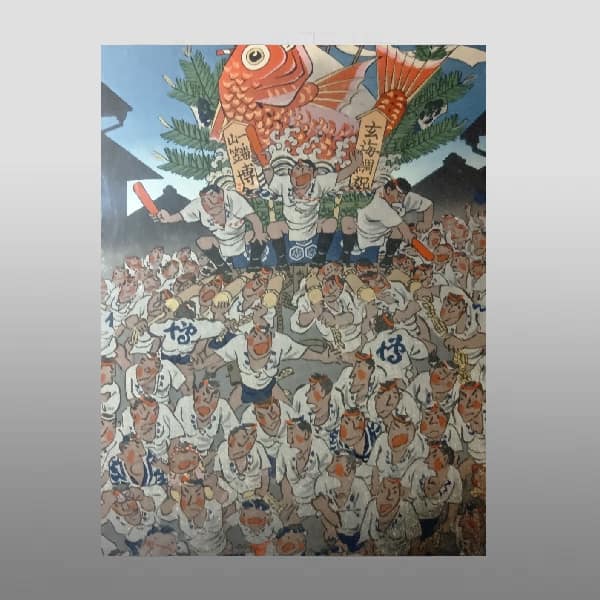 Nishijima Isao (西島伊三雄, 1923–2001) was a Fukuoka-born graphic designer, illustrator, and printmaker who devoted much of his career to documenting and celebrating the cultural traditions of his native Hakata. A graduate of the Tokyo Academy of Fine Arts, he served in the Japanese Navy during World War II, later returning to Fukuoka where he became one of the city’s most prominent visual artists. He was a member of the Nika Association and the Japan Advertising Artists Club.