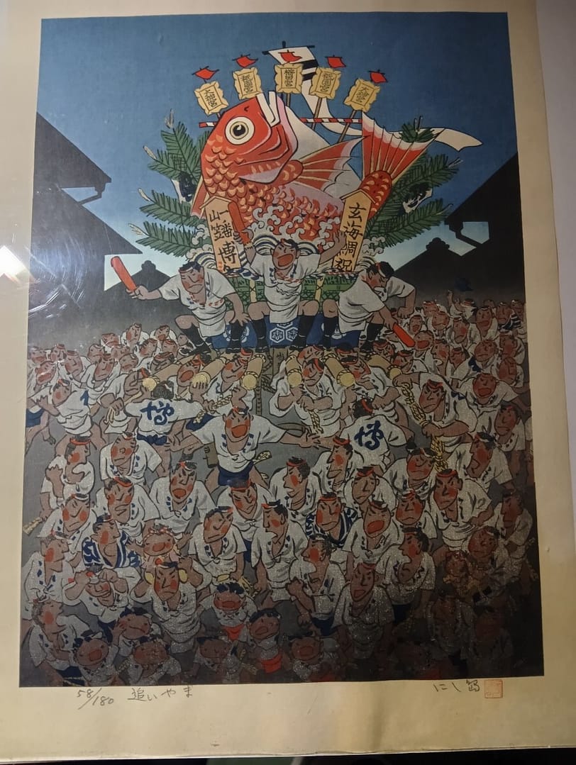 His limited-edition woodblock prints on Hakata themes occupy a distinct niche: they are not traditional ukiyo-e, shin-hanga, or sōsaku-hanga, but rather the work of a modern graphic artist applying woodblock printmaking techniques to regional cultural documentation. The small edition sizes (typically 180 impressions) and the artist’s growing posthumous reputation make these prints increasingly scarce on the secondary market.